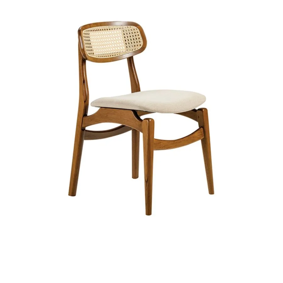 Cadeira Lira madeira maciça, palha e estofado em perfeita harmonia. Design acolhedor e delicado que convida a sentar e apreciar cada detalhe.