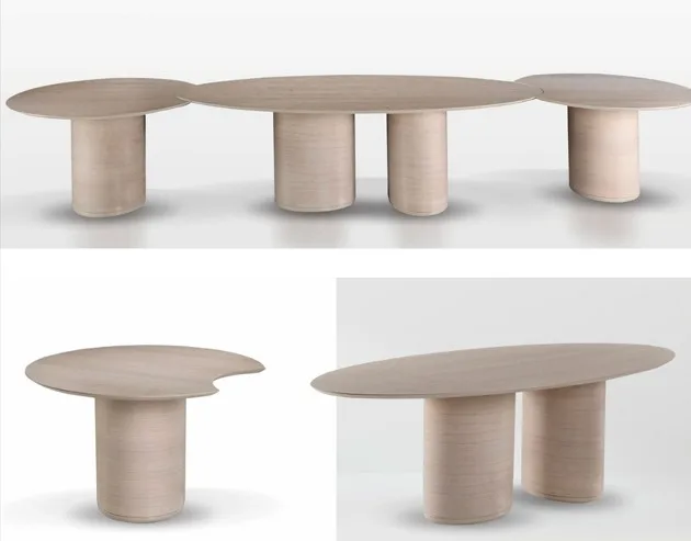 A mesa de jantar Ceia foi desenvolvida para quem possui espaço amplo e não abre mão para juntar familiares e amigos no momento de compartilhar refeições, podendo acomodar até doze pessoas, possibilitando uma circulação agradável sem perder a elegância. Formada por uma mesa oval, podendo essa ser usada sozinha, ou optar pela adição de uma ou duas mesas redondas com recorte de encaixe do tampo.
